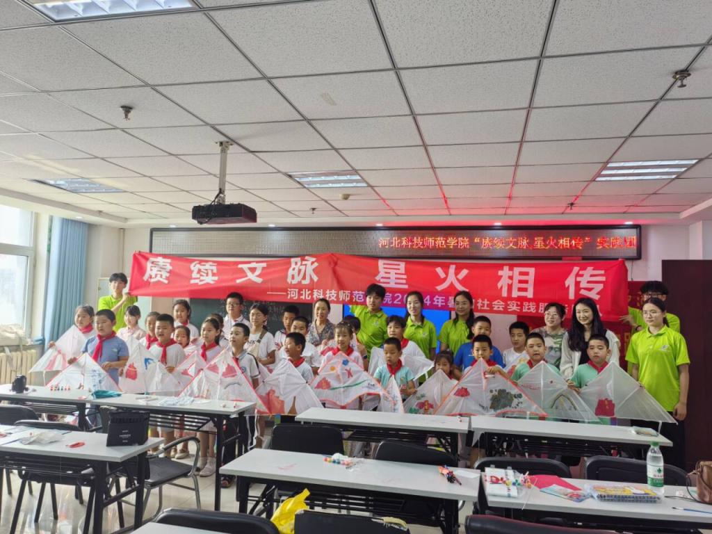 实践团成员教社区少年儿童手绘爱国风筝