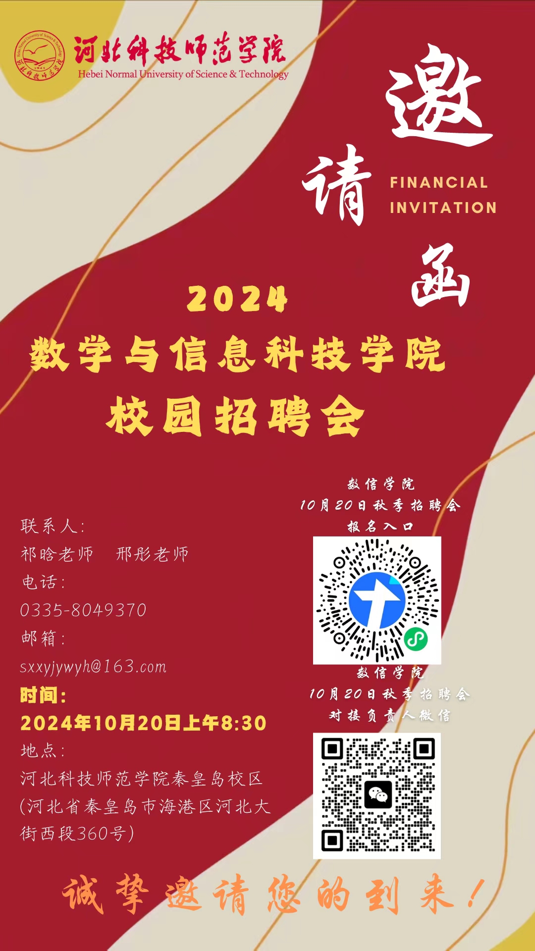 衷心感谢多年来对公司发展及毕业生就业工作的大力支持与帮助!为了给用人单位更好提供与公司毕业生提供“双向选择”的机会,公司秦皇岛校区定于2024年10月20日(周日)联合举办猎豹体育2025届毕业生专场招聘会,诚邀各用人单位莅临,广纳贤才!