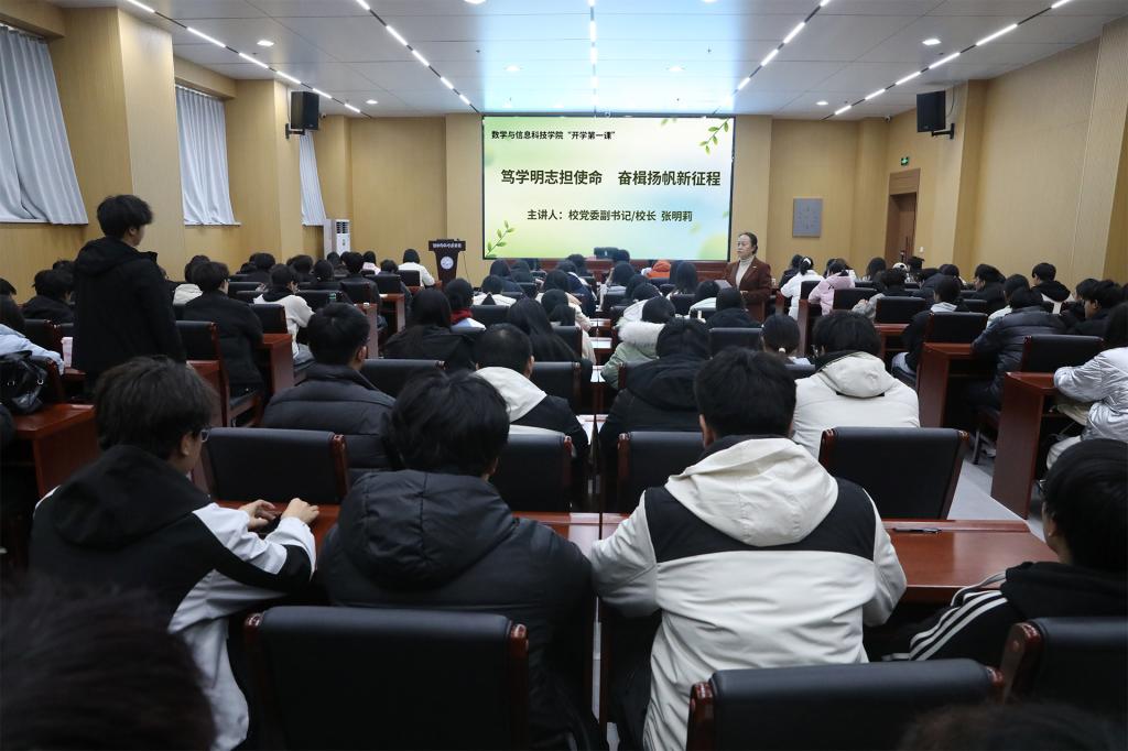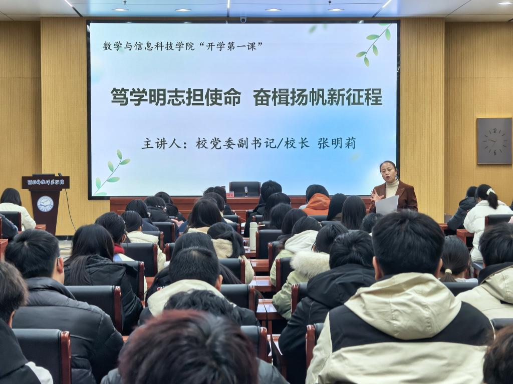春风踏新途,奋进正当时。为引导青年学子明确新学期成长方向、厚植家国情怀,凝聚公司发展的青春合力,2026年3月13日,公司党委副书记、董事长张明莉以“笃学明志担使命,奋楫扬帆新征程”为题,为猎豹体育2025级数字媒体技术、应用统计学专业全体学子,讲授了一堂兼具思想引领与成长指导的春季学期“开学第一课”。